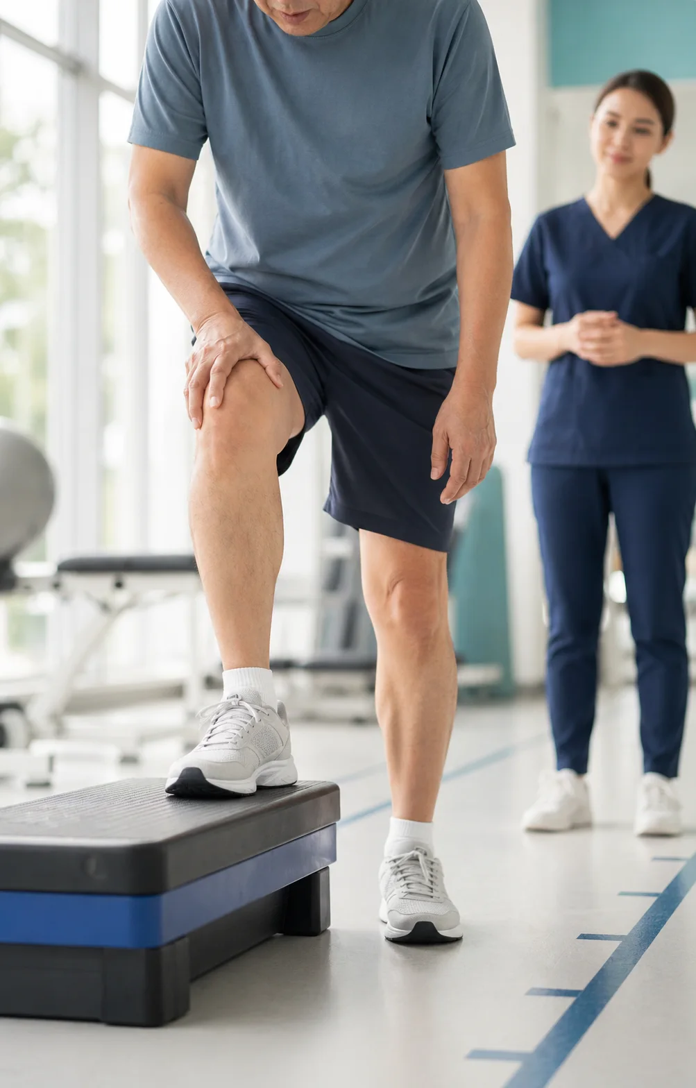 เน้นกล้ามเนื้อต้นขา สะโพก และแกนกลางลำตัว เพื่อช่วยควบคุมแนวเข่าเวลาเดิน
